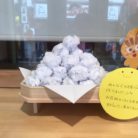 今日は、お月見会の準備で大わらわ。花紙を丸めてグールグール!0歳児さんから2歳児さんまで、先生のお団子を真似してゴーロゴーロ!大きな団子、小さな団子、形はそろい