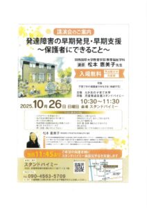 ご案内のとおり、10月26日(日)スタンドバイミーにて、松本恵美子先生をお迎えし、