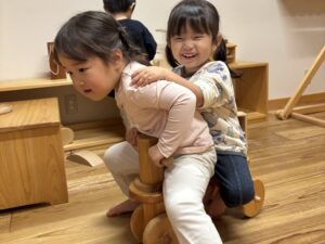 木の温もりや柔さかを生かした玩具や遊具で、思い切り遊ばせて頂きました。
