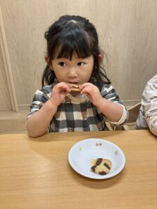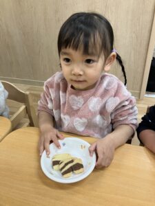 ホーム > 保育園のようす > 節分(もりもり) 公開日 2026.02.05 節分(もりもり) 節分 今日は節分!! おにはーそとー!ふくはーうちー!」 と子どもたちは元気に豆まきを楽しみました。 おやつの時間は、みんながいつも歌っている「おにのパンツ」が クッキーになって登場しました! トラ柄の模様や、マーブルの模様で、楽しいおやつの時間になりました。